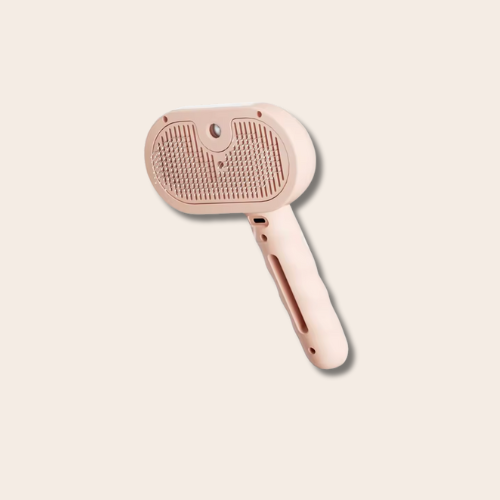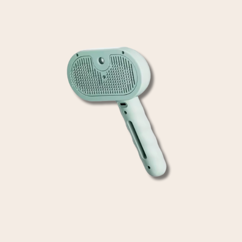 Med ett knapptryck aktiverar du sprayfunktionen, vilket förhindrar att hår flyger runt under borstningen. Borsten kan laddas via USB och det ergonomiska handtaget ligger bekvämt i handen, vilket gör pälsvården enkel och stressfri.