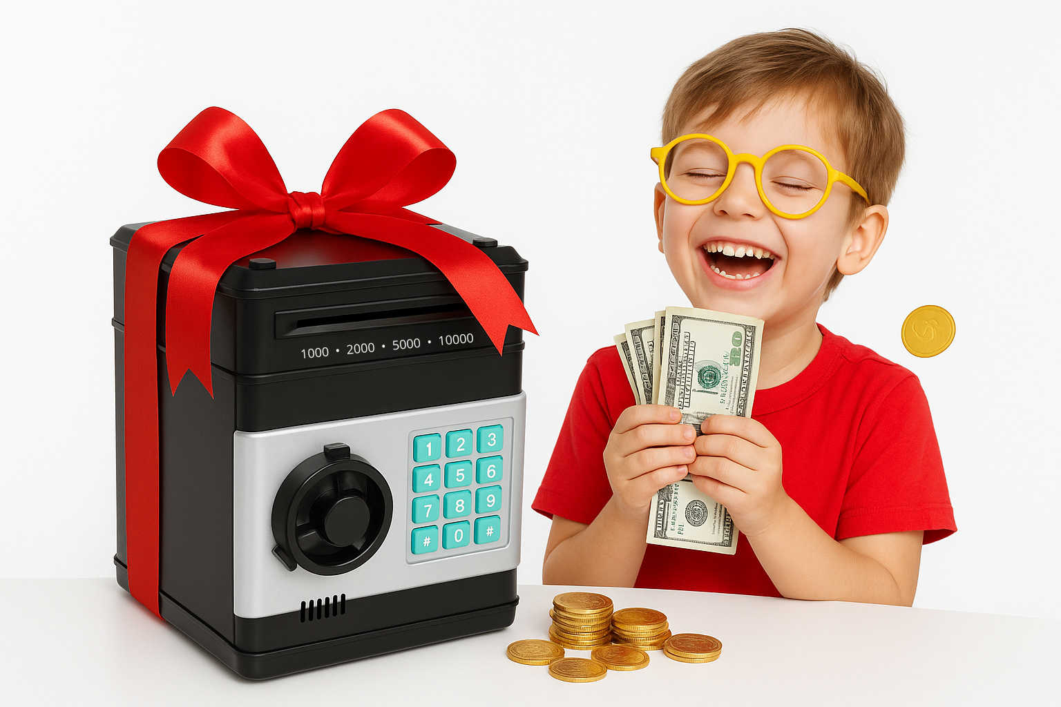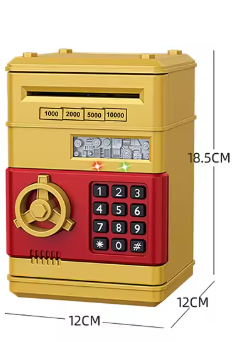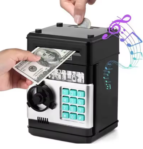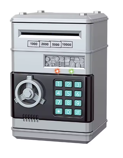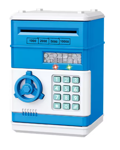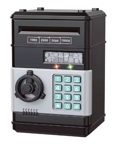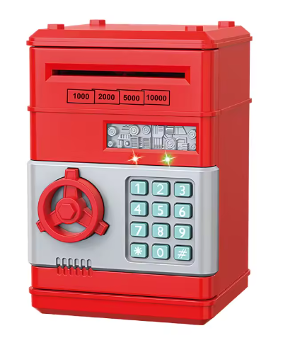 Gör sparandet roligt och lärorikt med MiniBanken! Den här moderna sparbössan för barn ser ut som ett riktigt kassaskåp och har ett fungerande tangentbord med pinkodsskydd. Tack vare den automatiska sedelinsättningen "sväljer" sparbössan pengarna precis som en riktig bankmaskin – något som gör sparandet extra spännande.